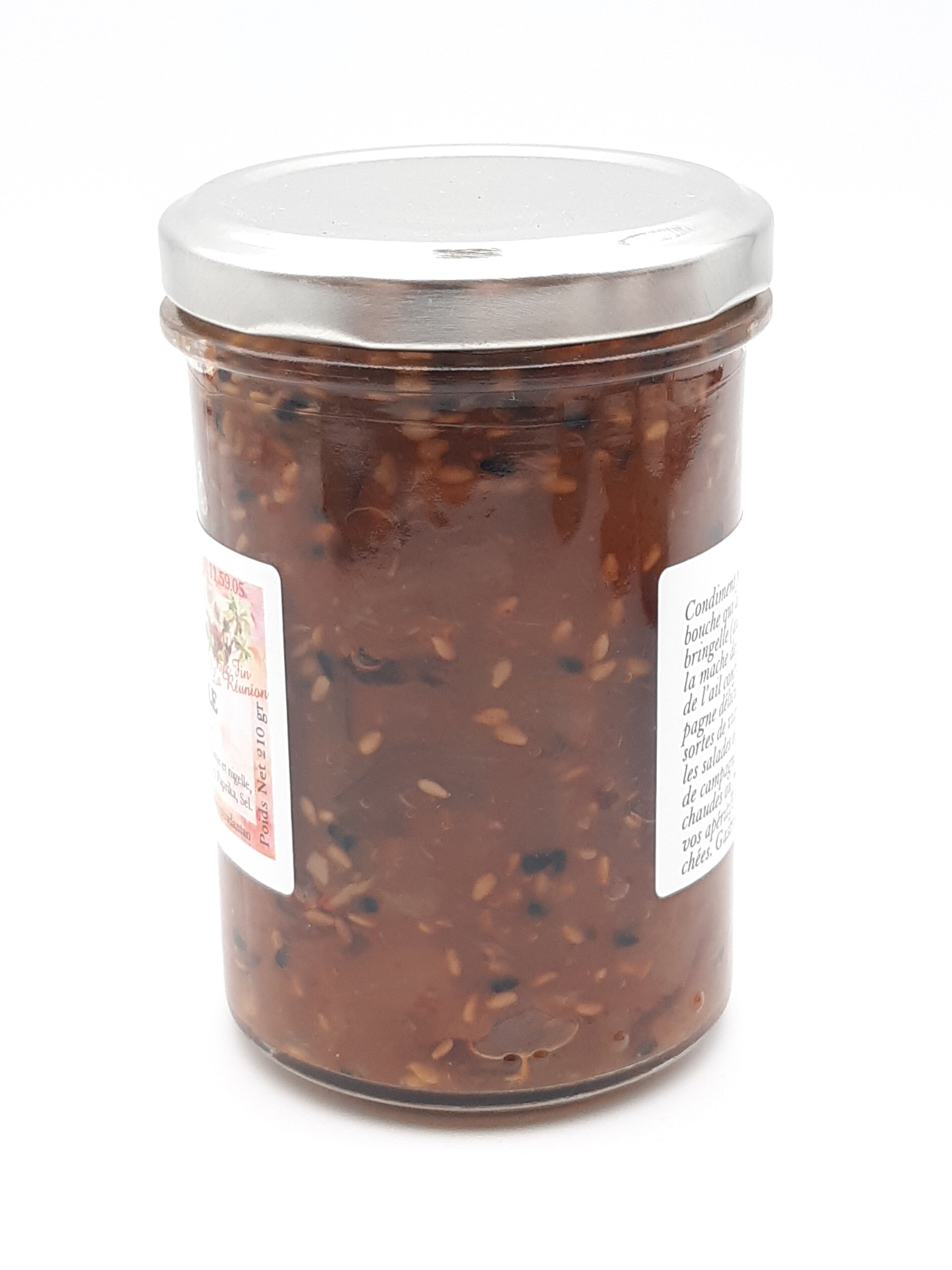 Condiments aigre-doux, dont les recettes sont originaires des Indes. Il faut distinguer le chutney aux recettes originelles, comme celui que nous vous proposons, des chutneys aux recettes anglo-saxonnes, proposés aujourd’hui dans de nombreuses épiceries fines. Toutes les recettes contiennent certes du sucre, mais tout est dans le dosage, ce qui fait que le chutney est souvent associé à une confiture alors que ce n’est absolument pas cela. Si les recettes mises en œuvre par les anglo-saxons viennent elles aussi des anciennes colonies britanniques de l’Inde, elles ont été modifiées en fonction des palais anglais qui trouvaient les préparations trop brûlantes, ainsi ont-ils augmenté les quantités de sucre pour en amoindrir les saveurs pimentées.