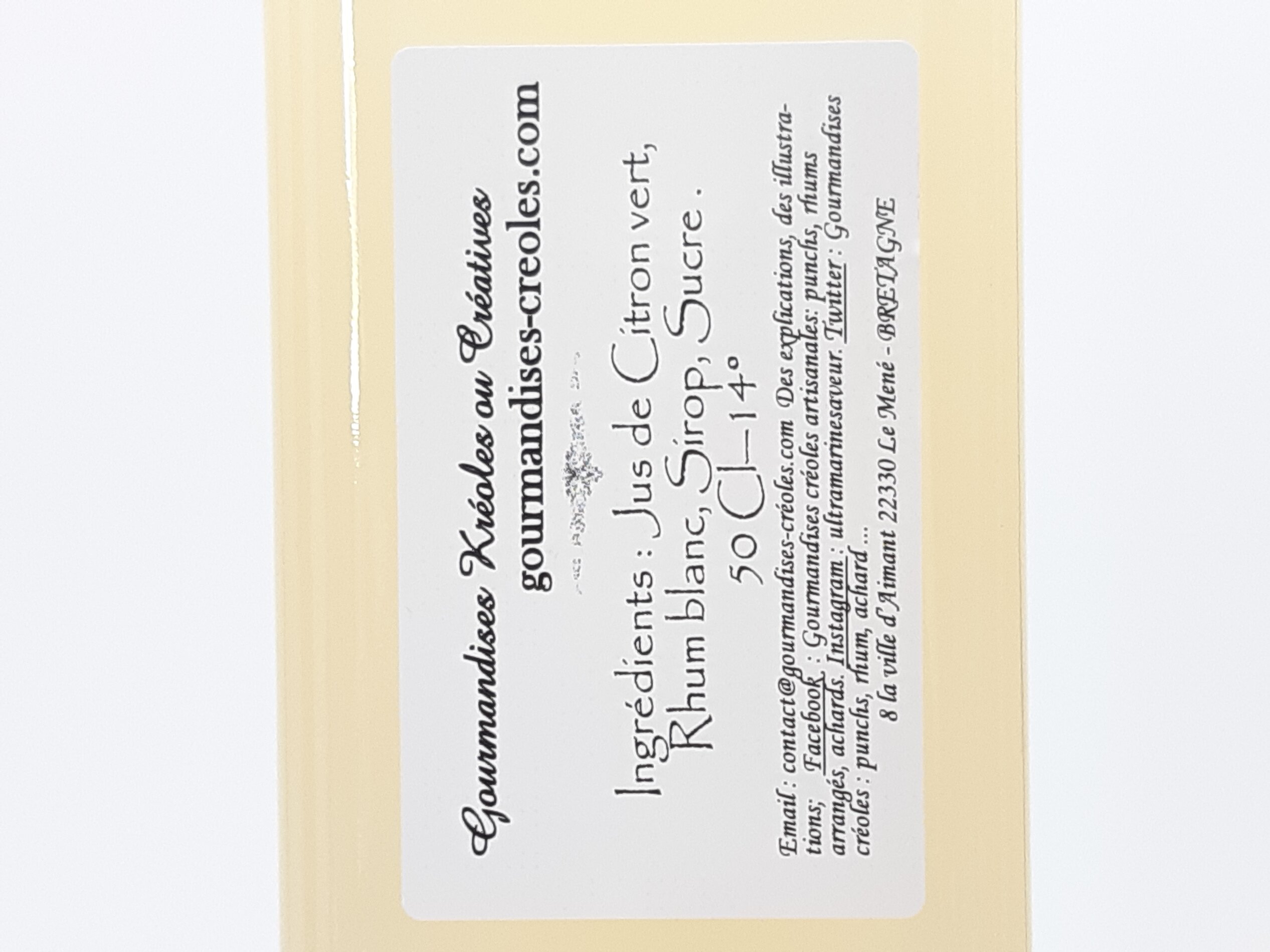 Ingrédients : Citron vert, rhum agricole blanc, sirop, sucre.