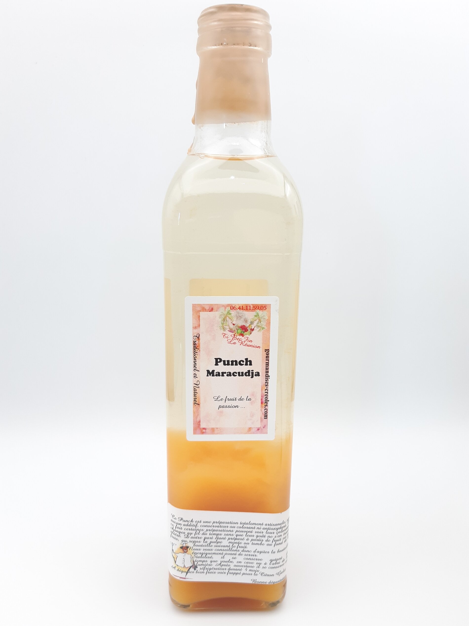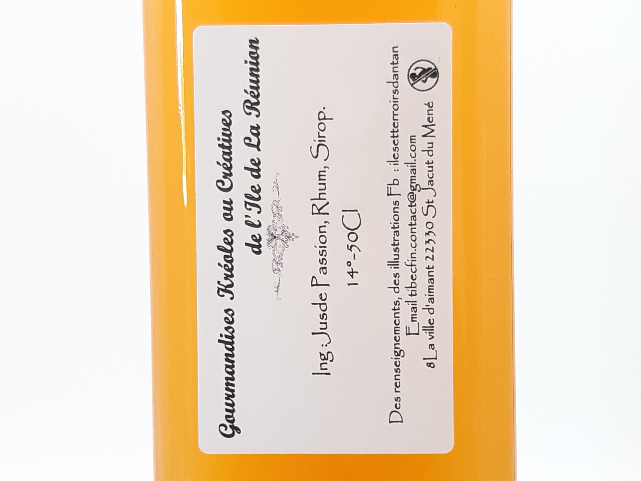 Ingrédients : Jus de fruit de la passion frais, Rhum blanc, sucre, sirop.